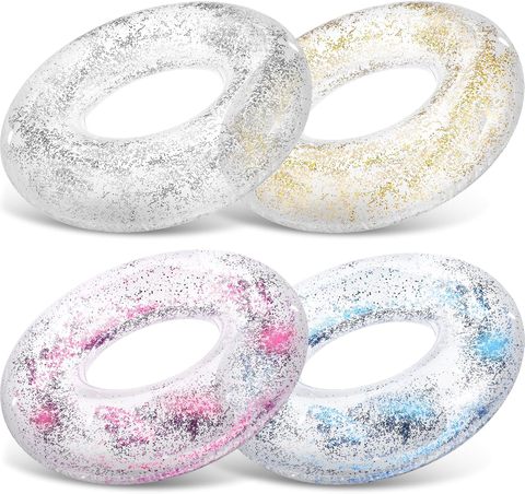 Hồ Bơi Bơm Hơi Float Ống Bơi Trong Suốt Đầy Màu Sắc Glitters Hồ Bơi Nổi Người Lớn Inflatable Long Lanh Confetti Bơi Vòng